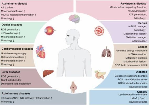 - Γιατί πολλές ασθένειες φαίνονται διαφορετικές αλλά μοιράζονται την ίδια ρίζα. Οι νευροεκφυλιστικές ασθένειες, οι καρδιακές παθήσεις, ο διαβήτης, η παχυσαρκία, τα αυτοάνοσα νοσήματα, η σήψη και ο καρκίνος συνεπάγονται όλα αποτυχία της μιτοχονδριακής λειτουργίας. Διαφορετικά όργανα. Το ίδιο υποκείμενο πρόβλημα.