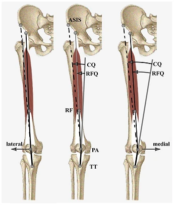 1) Σύνδρομο Επιγονατιδομηριαίου πόνου Μια γωνία-Q άνω των 13° μοιρών, αυξάνει την ένταση στον τετρακέφαλο και αυτός με την σειρά του μετατοπίζει την επιγονατίδα από τη φυσιολογική της θέση.